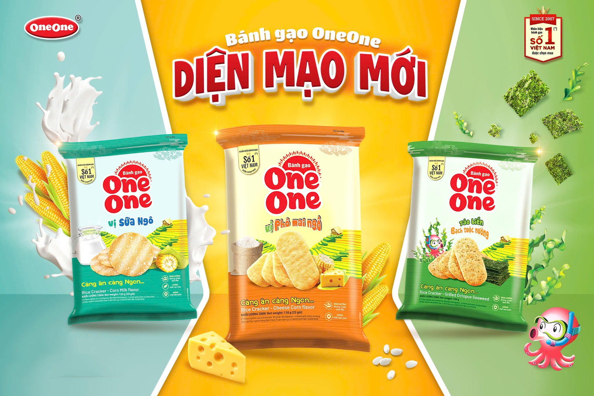 • Thơm lừng khoai lang nướng: Từ nguồn nguyên liệu tự nhiên thuần Việt kết hợp với công nghệ nướng bánh hiện đại, One One cho ra đời dòng bánh gạo khoai lang tím thơm lừng, giòn rụm, ngon khó cưỡng: Gạo Japonica trắng thơm, vừa ngon vừa lành, giàu dưỡng chất như vitamin B1, B2, E. Khoai lang tím ngọt bùi tự nhiên, giàu chất chống Oxy hoá, có tác dụng tăng sức đề kháng cho cơ thể, là món ăn bổ dưỡng cho cả nhà.
