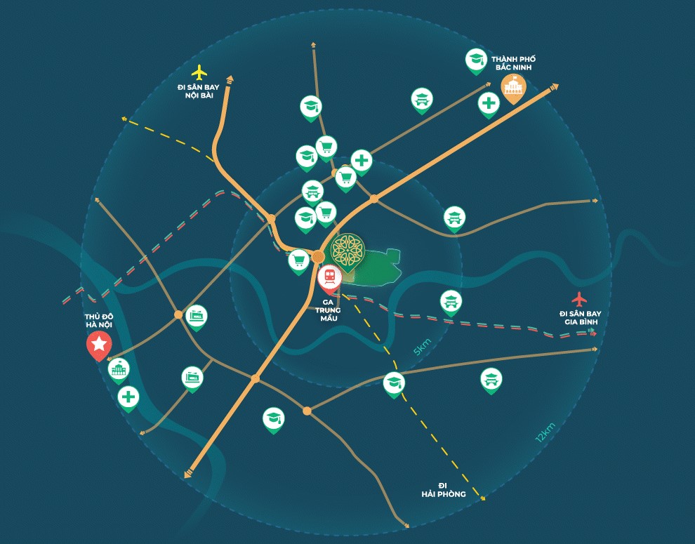 Kết nối trực tiếp với các trục giao thông huyết mạch: Cao tốc Hà Nội – Bắc Giang, QL1A, QL18, và đặc biệt là tuyến cao tốc 120m cùng Metro chiến lược nối Thủ đô – Sân bay quốc tế Gia Bình.
