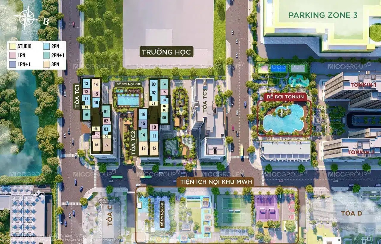 Hướng Tây Bắc: Tiếp giáp với tiện ích nội khu của phân khu The Tonkin