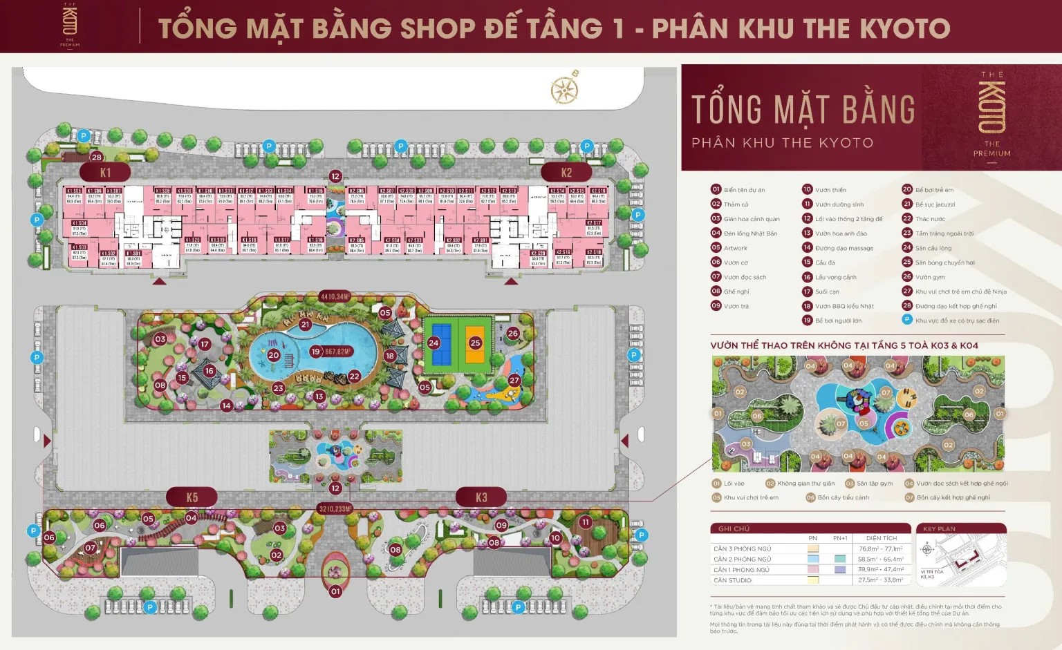 Quy mô: Phân khu Kyoto: 4 tòa căn hộ cao cấp 18 tầng; 2 tầng hầm; 5 tầng trung tâm thương mại với 1170 căn hộ