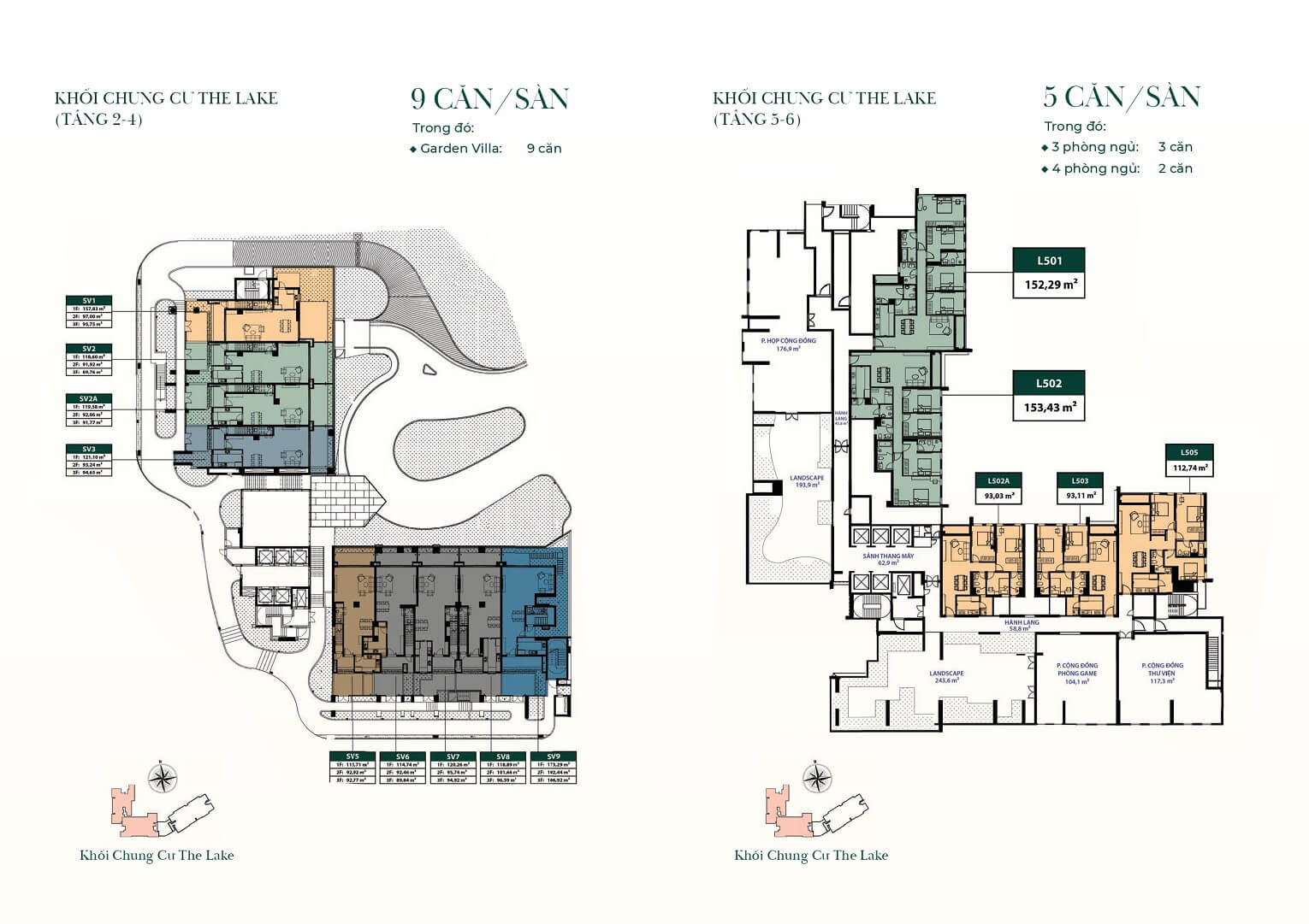 Biệt thự sân vườn: 9 căn (290-379m2).