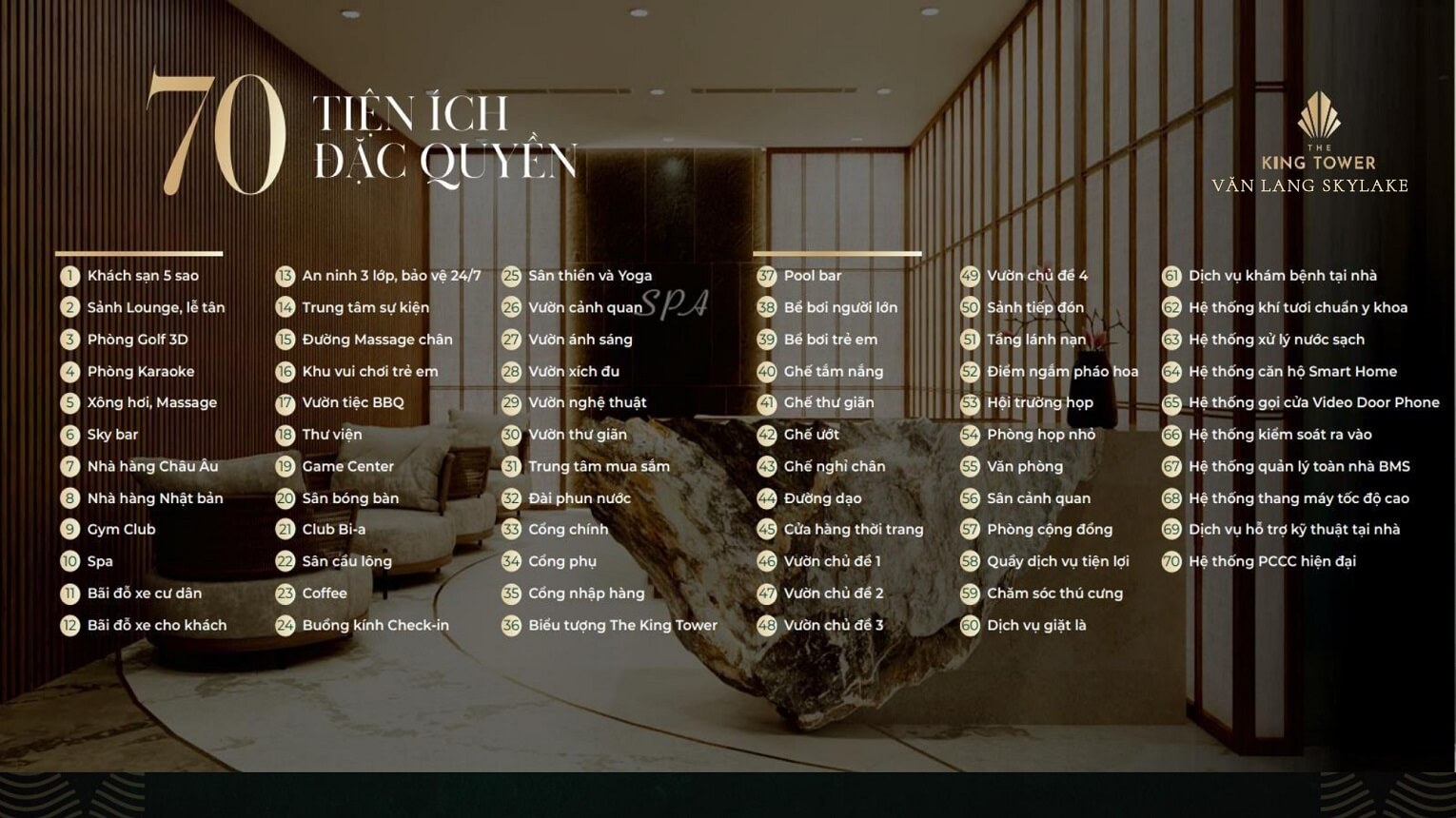The King Tower là tòa tháp khách sạn căn hộ hạng sang đầu tiên ở tại thành phố Việt Trì – Phú Thọ thuộc tổ hợp đẳng cấp Văn Lang Sky Lake 3 trong 1 Chung cư – Khách sạn – Biệt thự tạo nên một cộng đồng tinh hoa với chất sống riêng biệt.