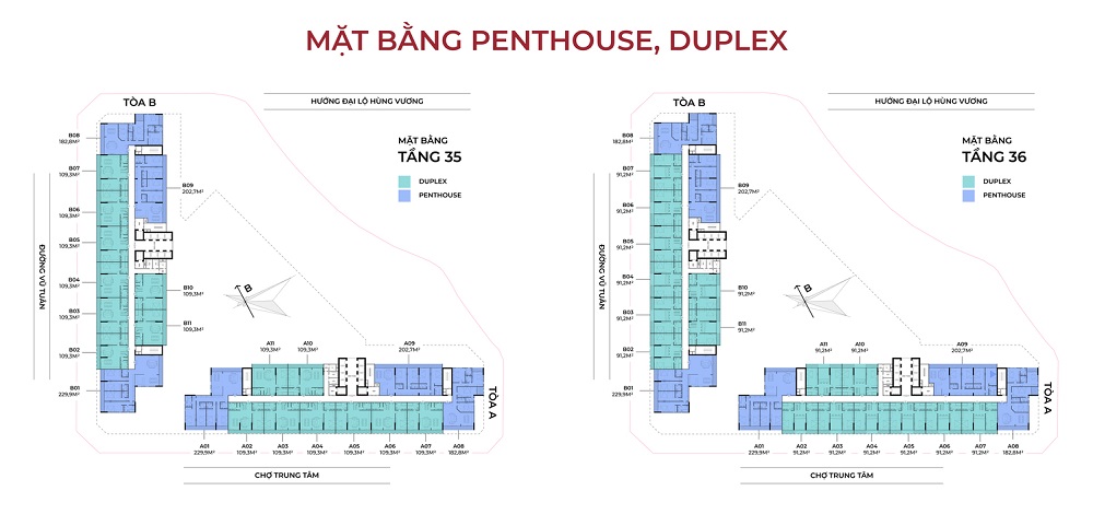 Tầng 35-36: Tầng căn hộ Penthouse duplex – DT: 109,3 – 202,7 m2.