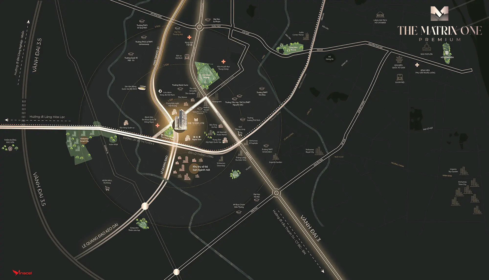 Tọa lạc tại cửa ngõ phía Tây Hà Nội, The Matrix One sở hữu vị trí đắc địa giúp cư dân dễ dàng kết nối với trung tâm thành phố cũng như các khu vực trọng điểm. Với mạng lưới giao thông linh hoạt, cư dân có thể di chuyển nhanh chóng qua các tuyến đường huyết mạch như Đại lộ Thăng Long, đường vành đai 3, Lê Quang Đạo, Mễ Trì,… mang đến sự thuận tiện tối đa trong công việc, học tập và giải trí.