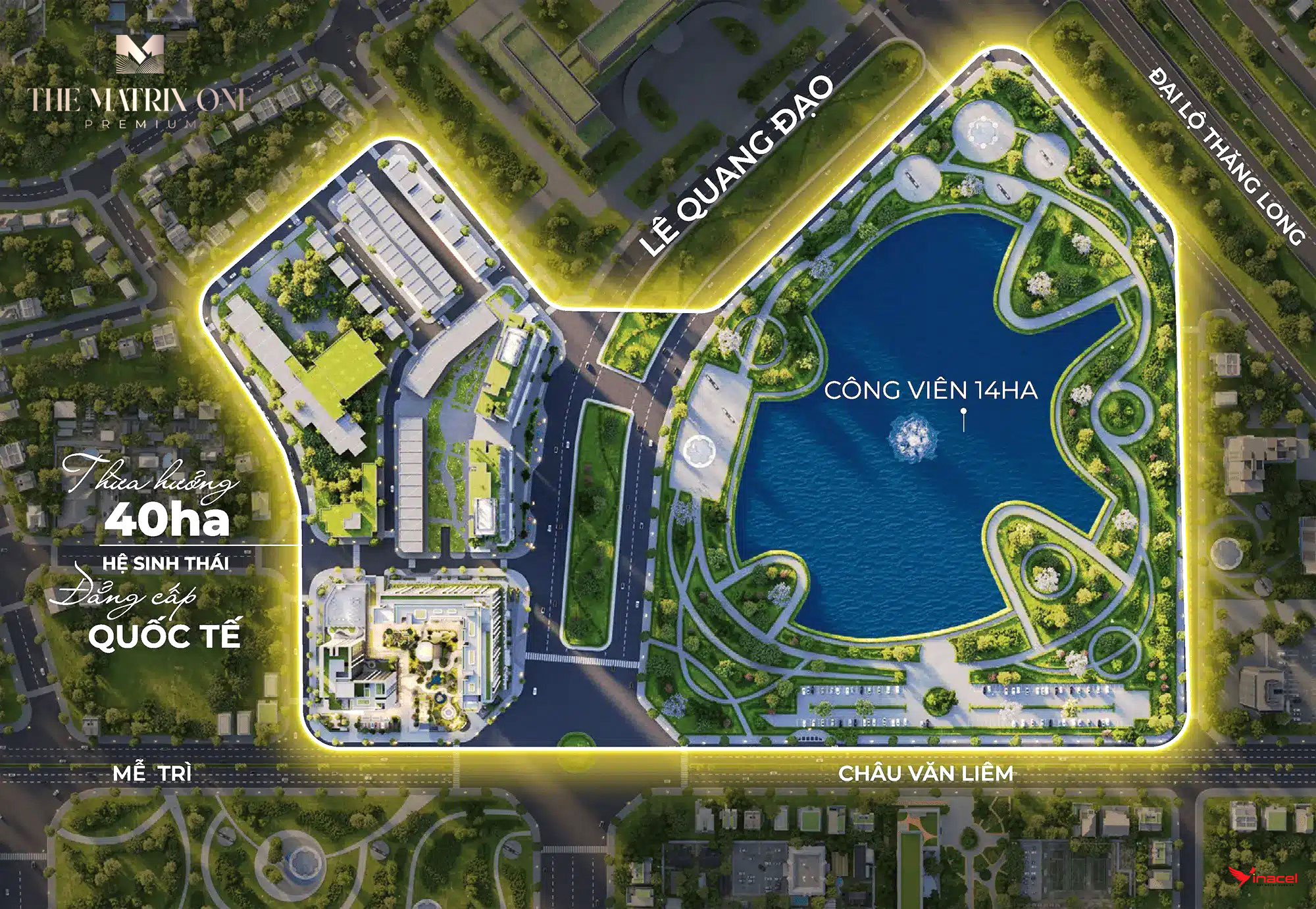 Đặc biệt, cư dân được hưởng thụ các tiện ích đẳng cấp khác như công viên - hồ điều hòa 14ha và đường đua F1.
