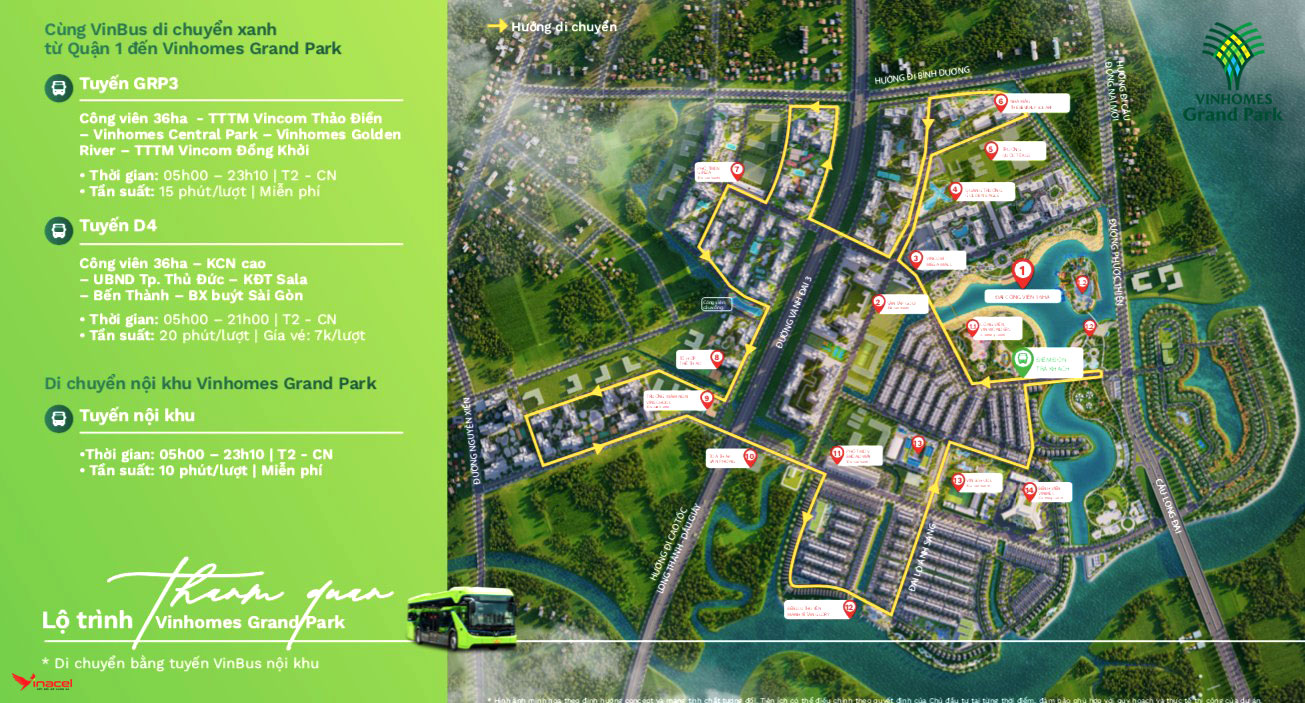 • Lộ trình 2: Xa lộ Hà Nội – Đường Hoàng Hữu Nam – Đường Nguyễn Văn Tăng – Vinhomes Grand Park