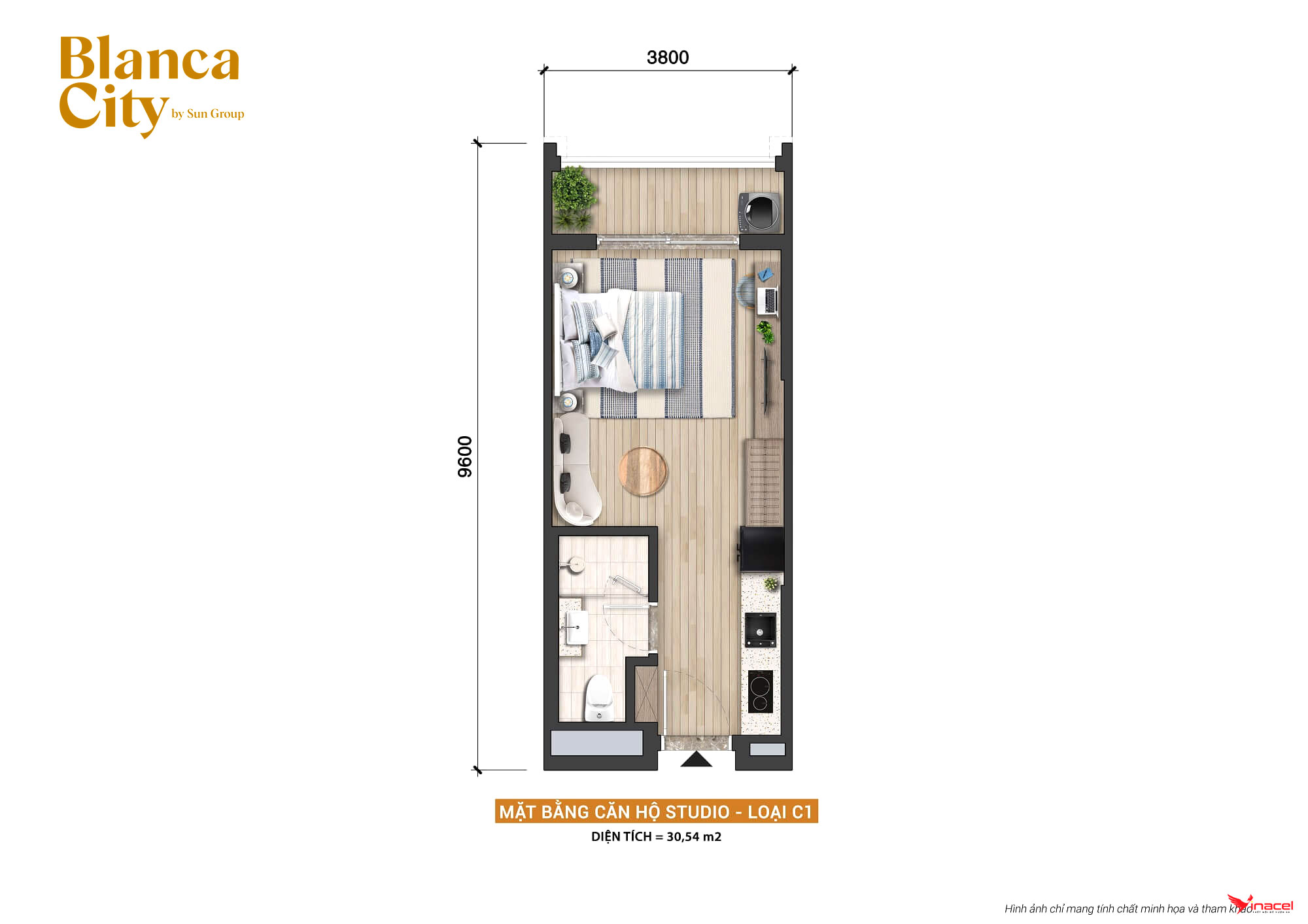 • Studio: khoảng 35 – 38 m², phù hợp cho người độc thân hoặc các cặp đôi trẻ.