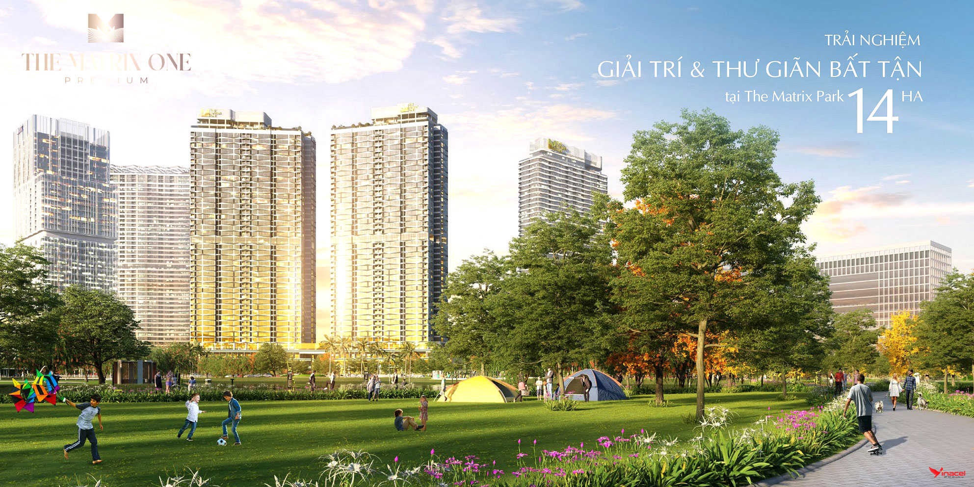 • Chủ đầu tư The Matrix One phát triển hệ thống tiện ích nội khu để phục vụ cộng đồng cư dân với các tiện ích như bể bơi bốn mùa, trung tâm thương mại, đường dạo bộ, phòng gym, spa, phòng khám, nhà thuốc,… Cư dân có thể yên tâm tận hưởng cuộc sống tiện nghi, hiện đại ngay trong khuôn viên dự án mà không cần đi đâu xa. Đặc biệt, công viên rộng tới 14ha với các tiện ích đi kèm sẽ góp phần tạo điểm nhấn “xanh” cho dự án.