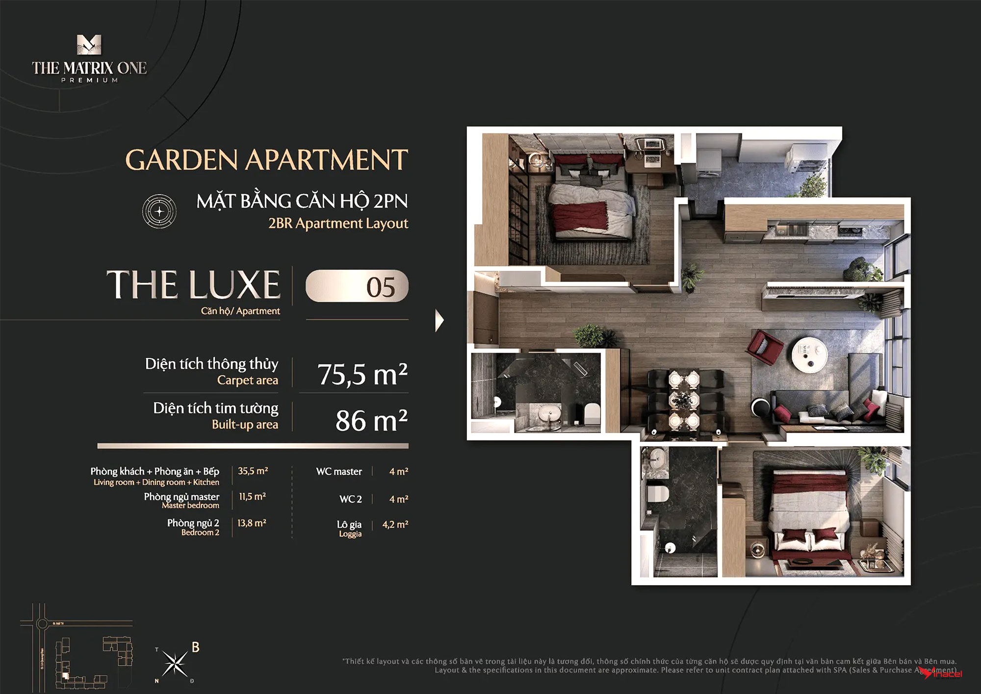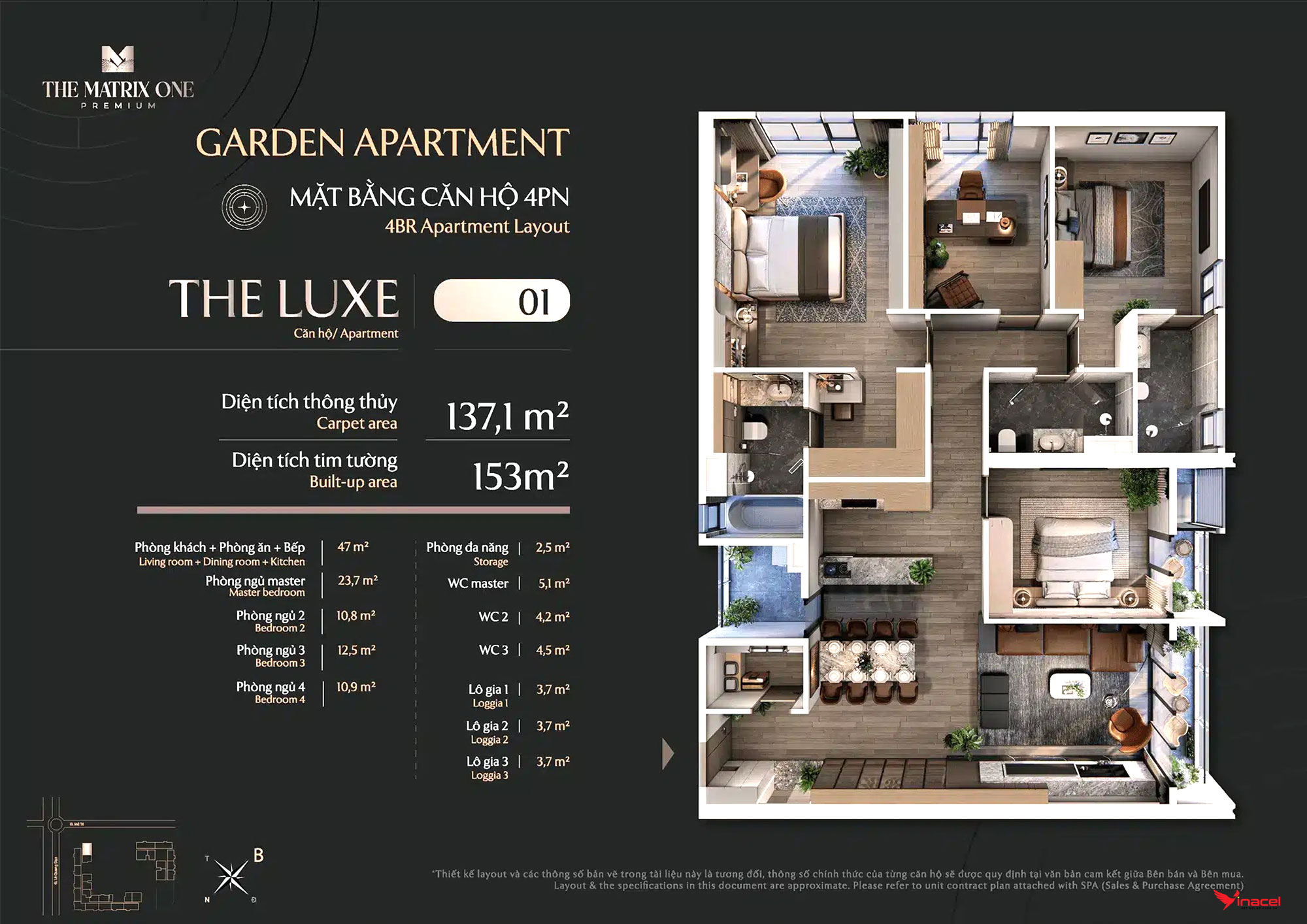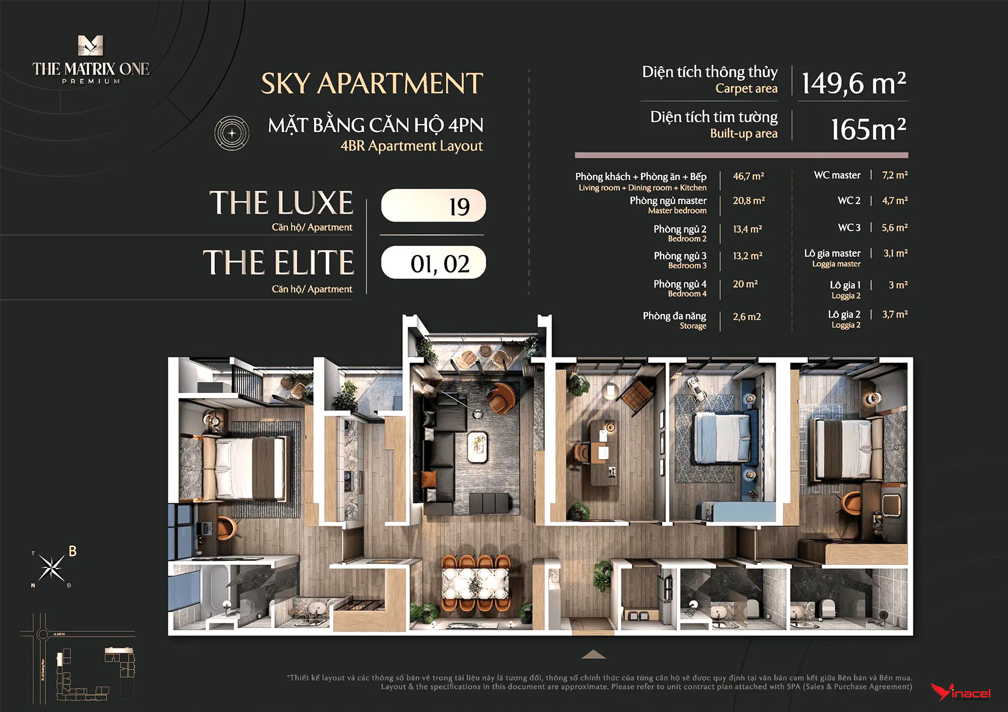 • Căn 4 phòng ngủ, 3 vệ sinh: Diện tích 144m2, 149m2.
