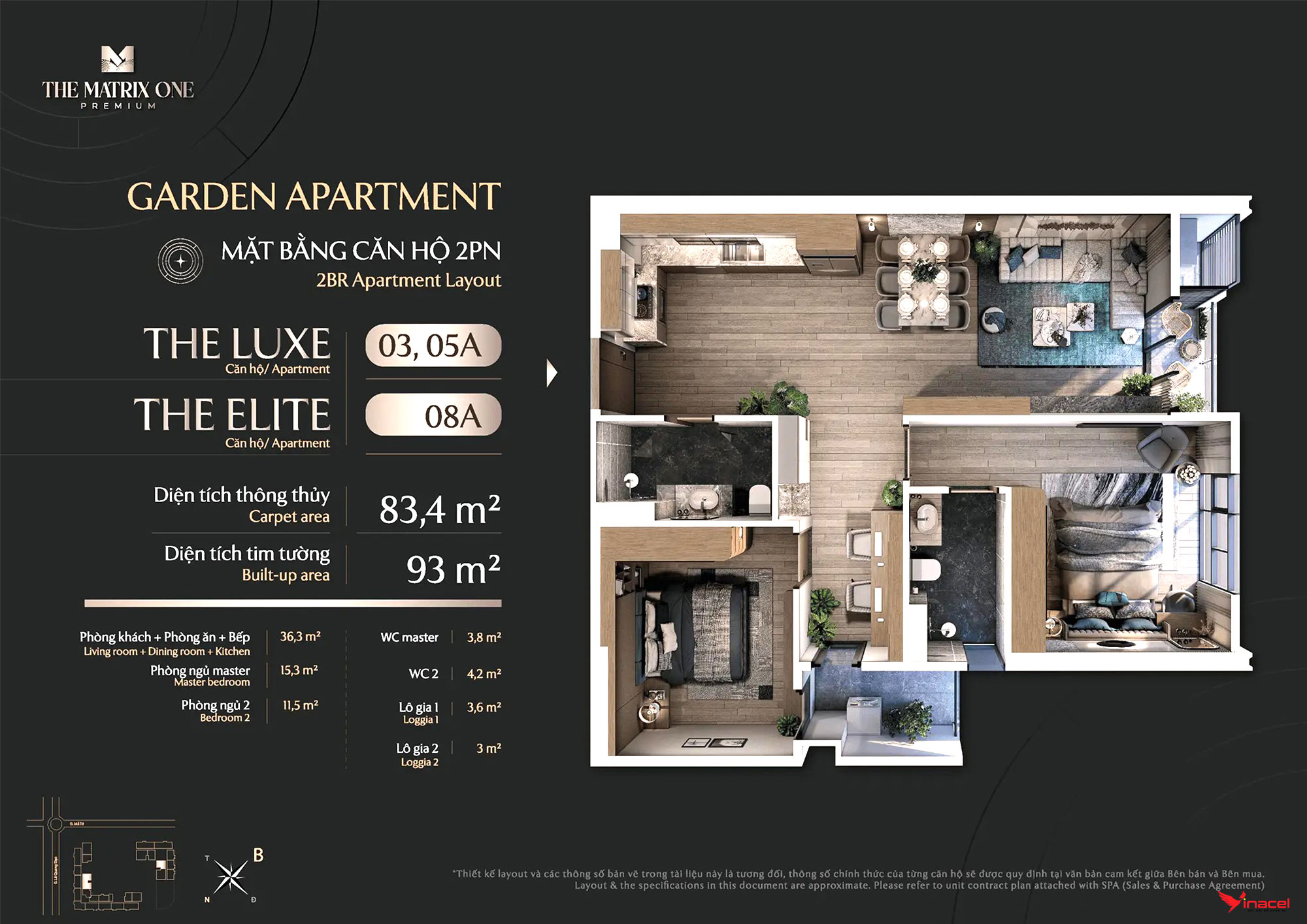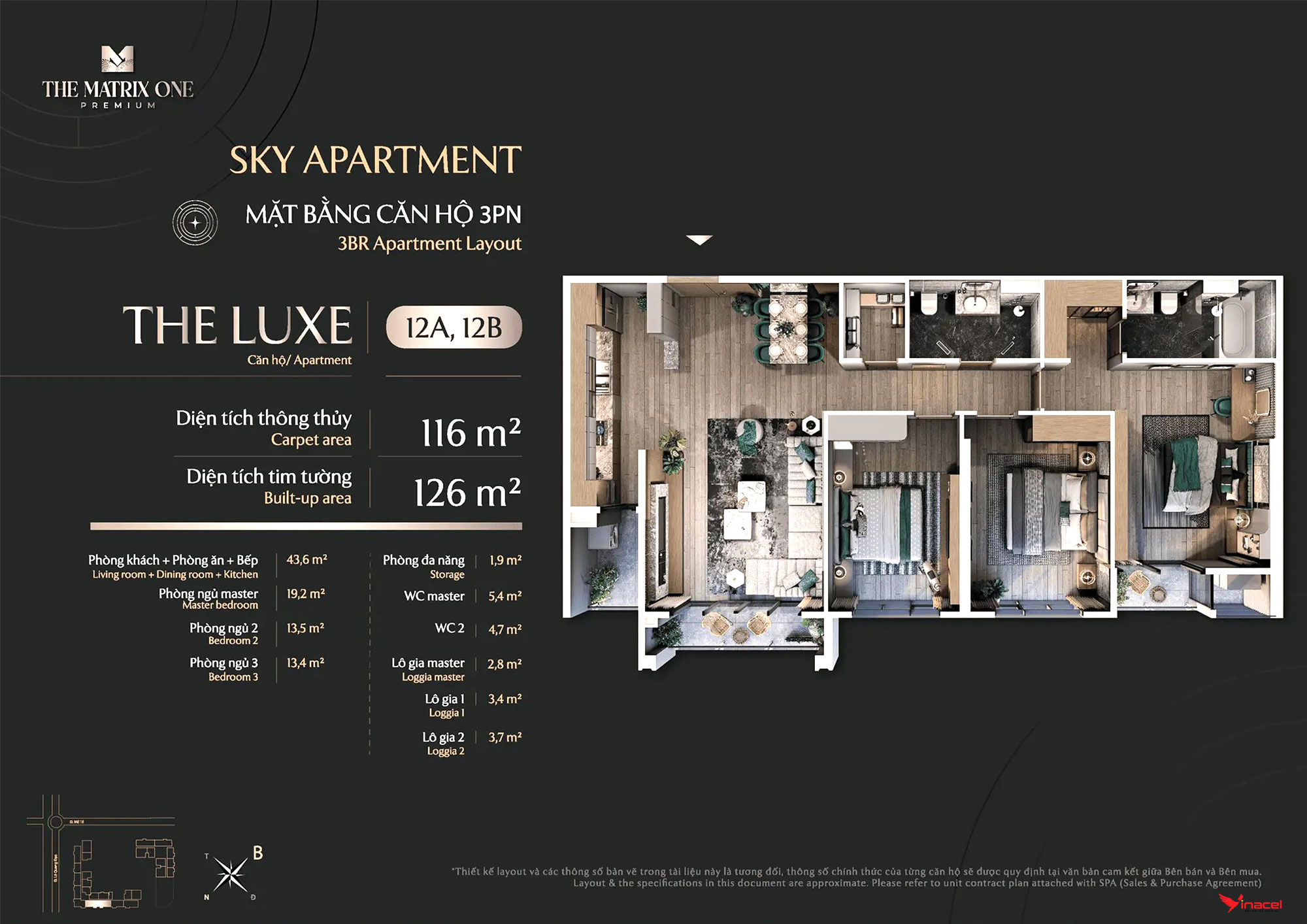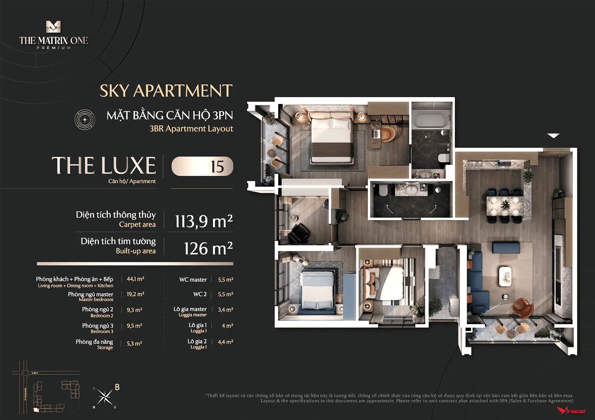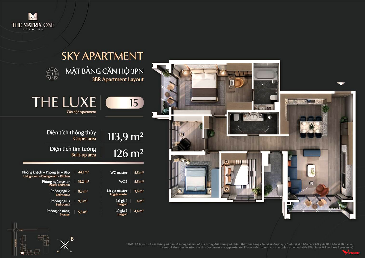 • Căn 4 phòng ngủ, 3 vệ sinh: Diện tích 144m2, 149m2.