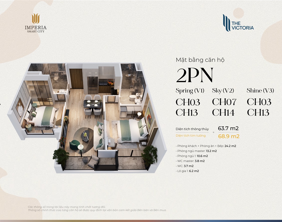 Quay trở lại Imperia Smart City The Victoria, cả 3 tòa tháp V1, V2, V3 đều được thiết kế theo hình chữ Z, với 6 loại hình căn hộ: studio, 1PN, 1PN+1, 2PN, 2PN+1, 3PN, 3PN+1, diện tích từ 27 – 88.2 m2. Cũng như hầu hết các tòa căn hộ Vinhomes Smart City xây dựng kể từ năm 2022, sức hút của căn hộ Imperia The Victoria đến từ lối thiết kế mới: tập trung vào những căn hộ diện tích rộng với ban công phòng khách trải dài hoặc ban công “side by side” phòng khách + phòng ngủ nối liền, kết hợp cửa sổ FULL trần + sàn, hướng đến trải nghiệm sống cao cấp của những “người có tiền”.