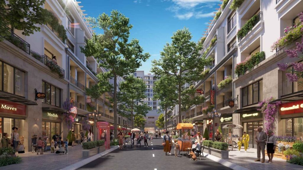• Shophouse và nhà phố thương mại bố trí dọc các trục đường chính, tối ưu công năng kinh doanh.