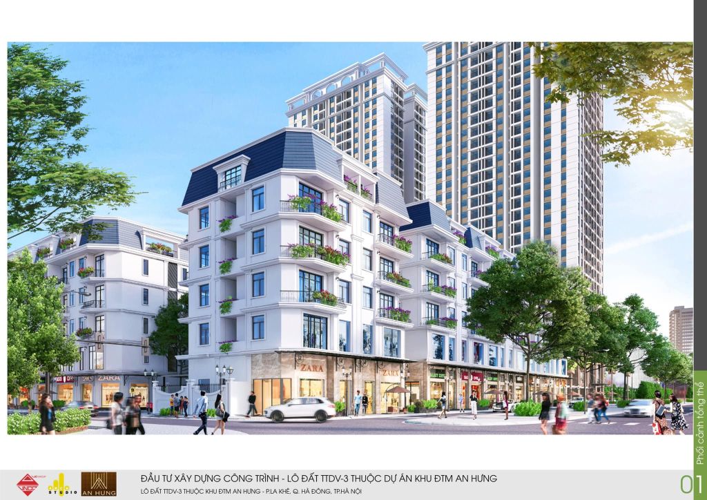 Shophouse The Charm An Hưng gồm 4 Block liền kề shophouse với số lượng khan hiếm chỉ có 38 căn.được thiết kế theo phong cách tân cổ điển, sang trọng, chú trọng đến không gian sống và kinh doanh, đa dạng diện tích, đảm bảo tối đa mục đích sử dụng vừa ở, vừa kinh doanh, hay cho thuê sinh lời,…