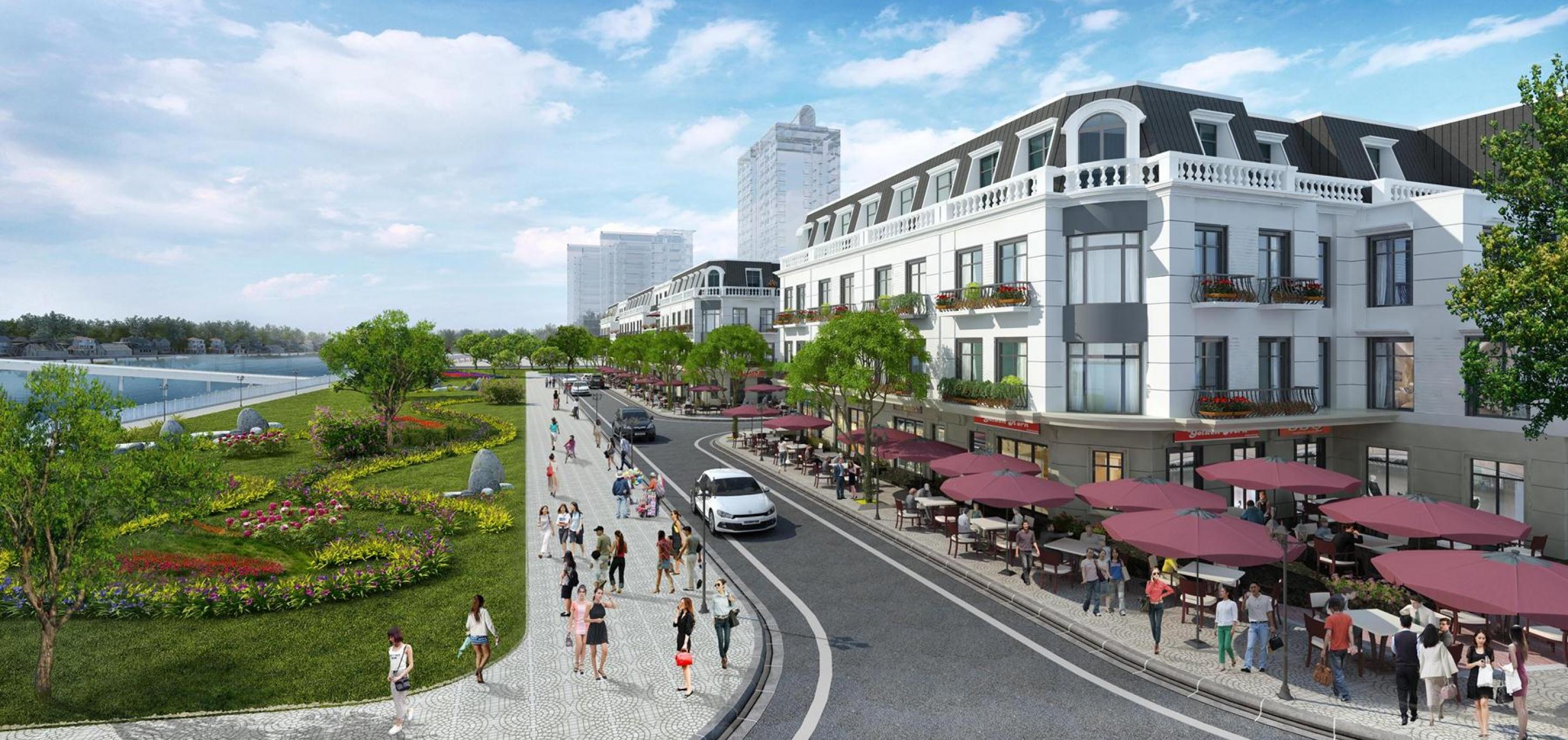 Ngoài ra các lô shophouse thương mại, nội khu dự án còn được quy hoạch hoàn hảo với các hạng mục như không gian ngồi cà phê ngoài trời, không gian ăn nhẹ ngoài trời và chỗ ngồi thưởng thức các hoạt động ngoài trời, khu vui chơi trẻ em, công viên và các tuyến đường giao thông nội khu. Phối cảnh của dự án được chủ đầu tư chú trọng, mật độ xây dựng chiếm tỉ lệ thấp.